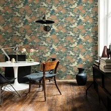 Pattern Name:Drömma Teal Songbird and Sunflowers Wallpaper