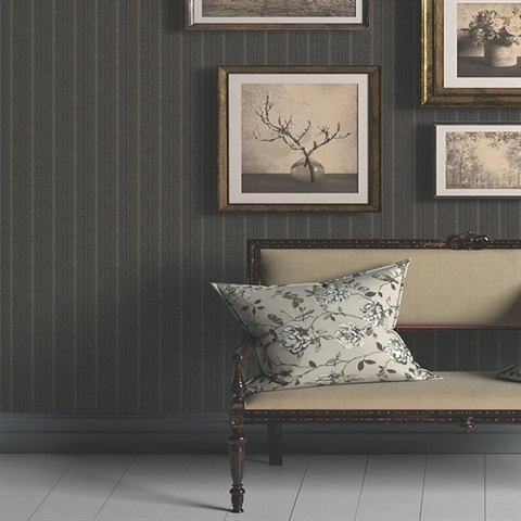Pattern Name:Elkan Stripe Black Herringbone Wallpaper