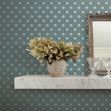 Pattern Name:Emma Slate Blue Floral Medallion Wallpaper