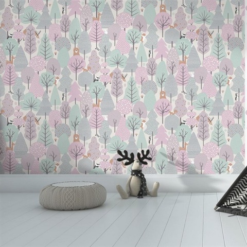 Pattern Name:Enchanted Forest Pink Wallpaper