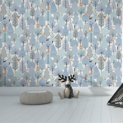 Pattern Name:Enchanted Forest Sky Blue Wallpaper