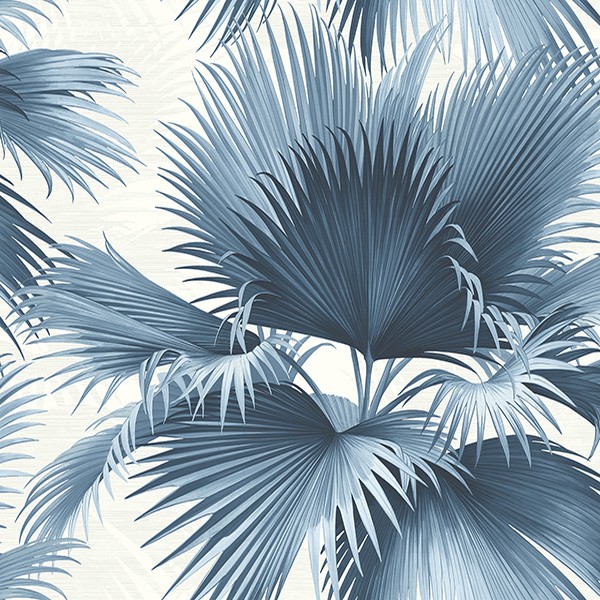 Modern Botanical Designed pattern, Give your walls a modern island vibe with this palm leaf wallpaper. The stunning indigo and light blue print has a dimensional finish with hints of pearlescent inks. A light background helps the design pop.