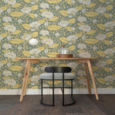 Eva Yellow Lotus Dreams Large Floral Wallpaper