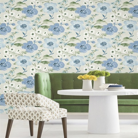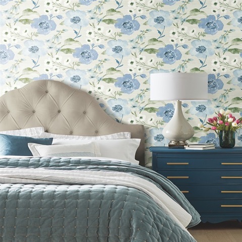 Pattern Name:Evelyn Blue Floral Wallpaper