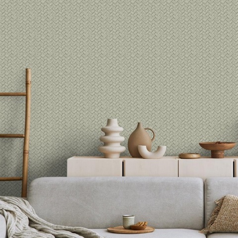 Pattern Name:Faux Natural Weave Green Wallpaper