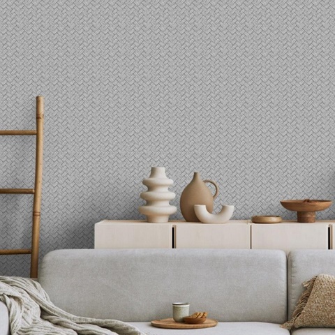 Pattern Name:Faux Natural Weave Grey Wallpaper