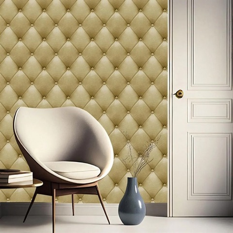 • Pattern Name: Faux Plush Quilted Diamond Upholstery Gold Wallpaper
