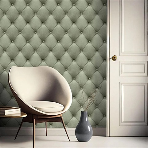 Faux Plush Quilted Diamond Upholstery Green Wallpaper