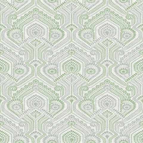 Fernback Green Ornate Damask Floral & Leaf Wallpaper
