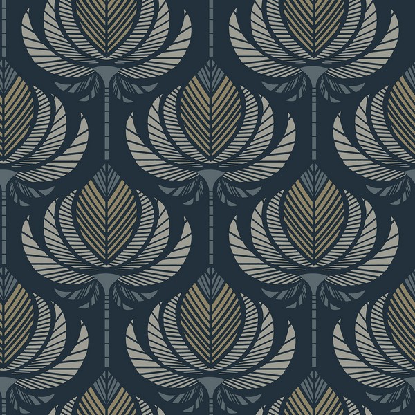 Pattern Name:Ferrenby Navy Blue Modern Fan Wallpaper