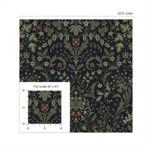 Filigree Floral Botanical Midnight Blue & Sage (Nextwall) Peel and Stick Wallpaper