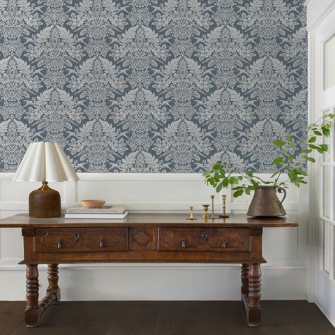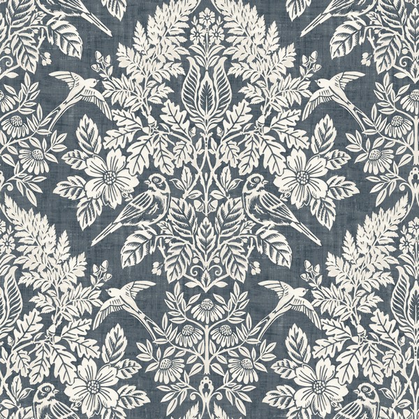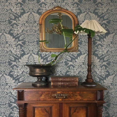 Pattern Name:Finch Blue Woodland Damask Wallpaper