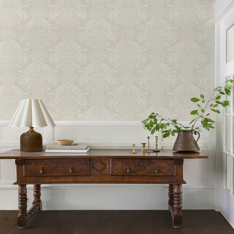 Finch Neutral Woodland Damask Wallpaper Chris Loves Julia