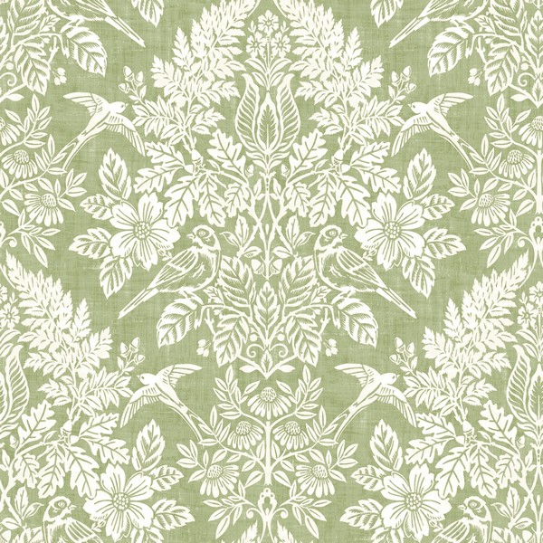 Pattern Name:Finch Light Green Woodland Damask Wallpaper