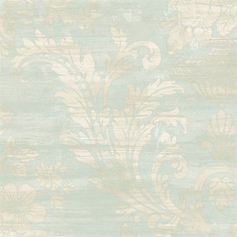This Floral Damask wallpaper features floral damask patterns with a dark, faded blue base. The combination of the floral damask patterns and the background gives off an alluring appeal.