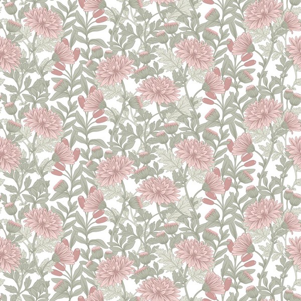 Floral Sonata Pink and Green Wallpaper