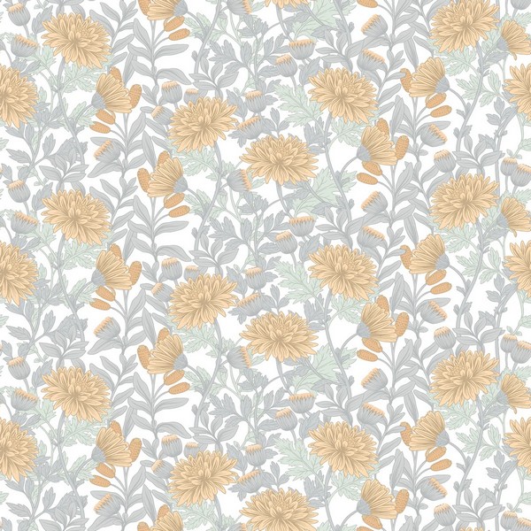 Floral Sonata Yellow and Grey Wallpaper