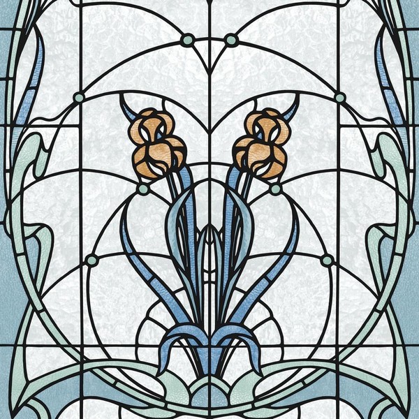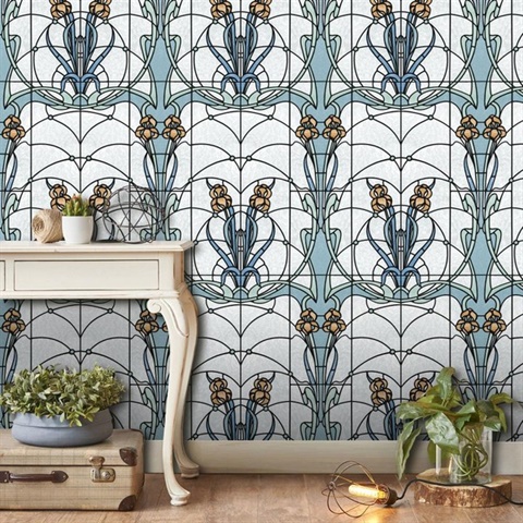 Pattern Name:Floral Stained Glass Blue Wallpaper