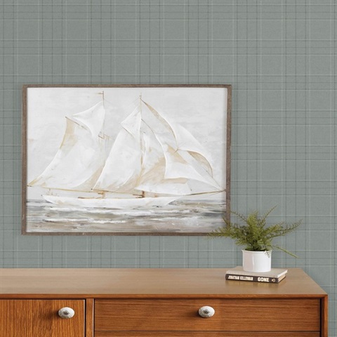 Fox Hollow Turquoise Dashed Plaid Wallpaper