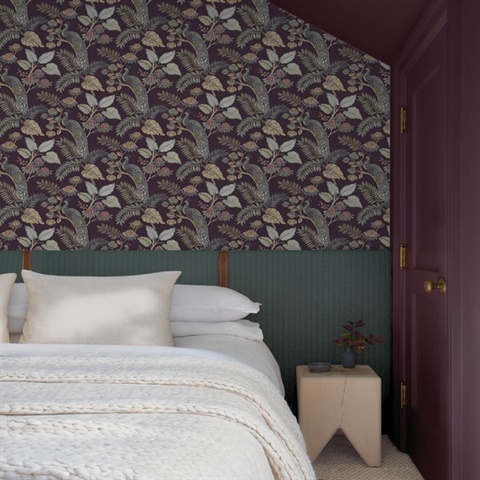 • Pattern Name: Geneva Plum Peacock Paradise Wallpaper