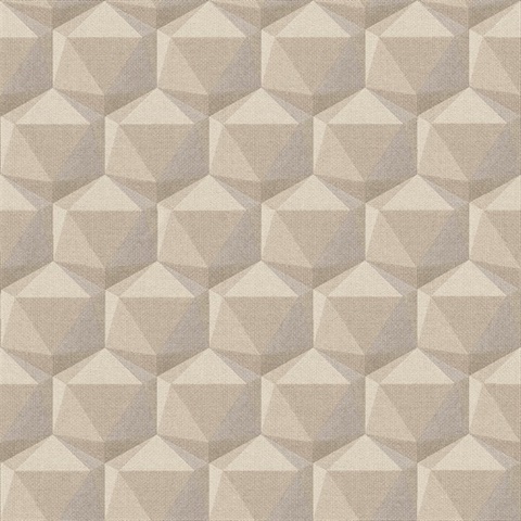 Geometric Taupe Motif Hexagon Textured Fabric Wallpaper