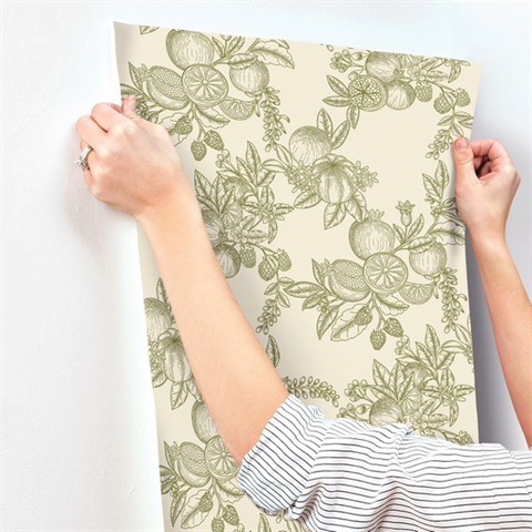 Pattern Name:Gerty Green Fruit Toile Wallpaper