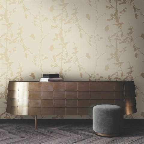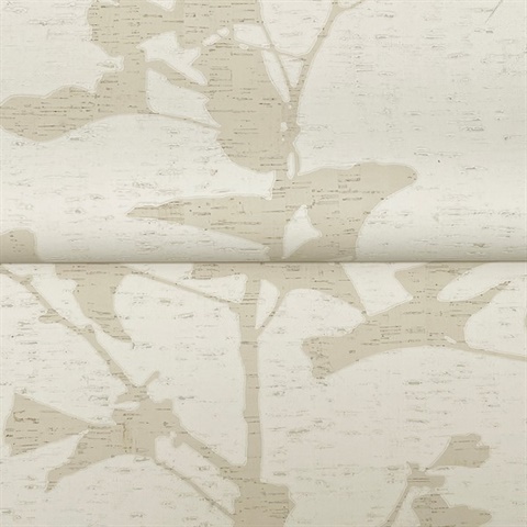 Ginkgo Silhouette Neutral Cork Wallpaper