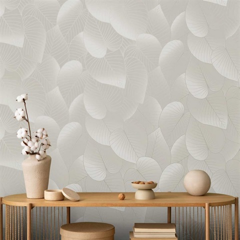 Pattern Name:Graphic Leaves Beige with Foil Accents Wallpaper