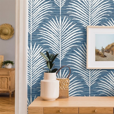Grassland Palm Botanical Blue Lagoon (Nextwall) Peel and Stick Wallpaper