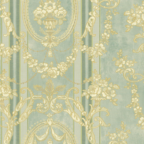 Green Cameo Floral Stripe Wallpaper