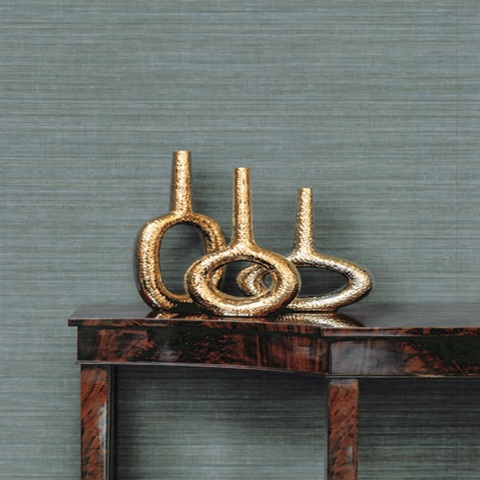 Green Silk Textured Faux Textured Fabric Wallpaper