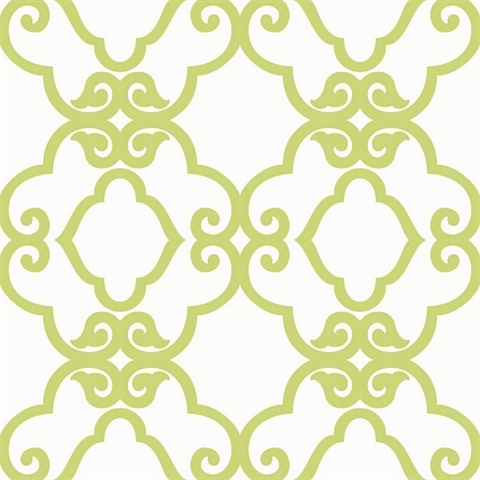 Green & White Commercial Scroll Trellis Wallpaper. This is a green & white colored commercial wallcovering. Packaged and sold in 30-yard bolts only. (Please note that is wallpaper is made to order. Samples take one week to be made and cut. Production time for actual orders: 2-3 weeks)