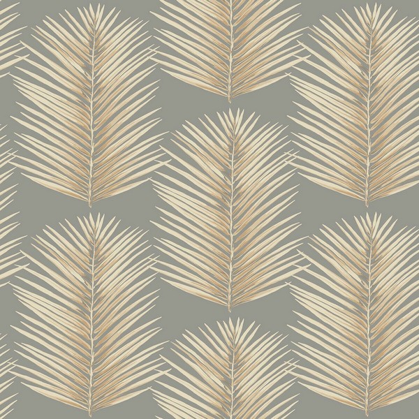 Grey & Gold Commercial Palm Leaves Wallpaper. This is a grey & gold colored commercial wallcovering. Packaged and sold in 30-yard bolts only. (Please note that is wallpaper is made to order. Samples take one week to be made and cut. Production time for actual orders: 2-3 weeks)