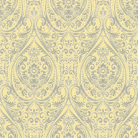 Boho Chic Yellow Gypsy Damask Wallpaper