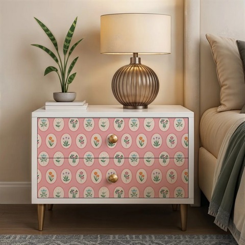 Pattern Name:Heirloom Floral Medallions Pink Peel and Stick Wallpaper