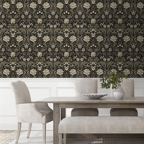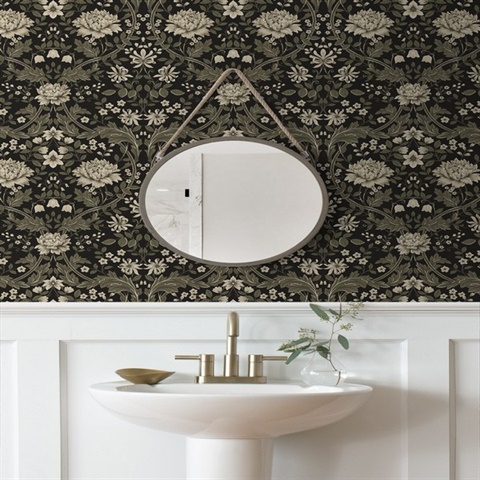 • Pattern Name: Honeysuckle Trail Floral Ebony & Pavestone Peel and Stick Wallpaper