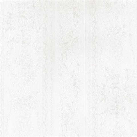 Pattern Name:In Register Stripe Emboss Floral Damask Pearl White Wallpaper