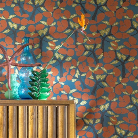 Pattern Name:Janneiro Botanica Blue and Orange Wallpaper