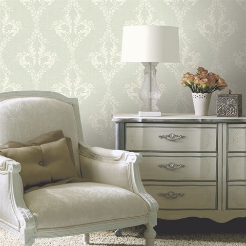 Jules Light Green Scrolling Damask, 298-30373