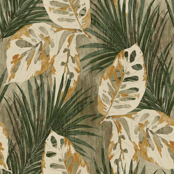 Pattern Name:Karma Evening Green Tropical Leaf Wallpaper