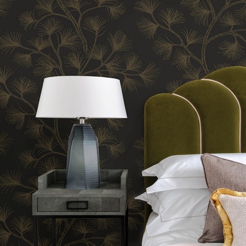 • Pattern Name: Kismine Noir Botanical Trail Wallpaper