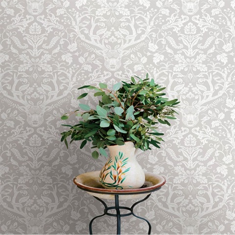 Pattern Name:Kiwassa Grey Antler Damask Wallpaper