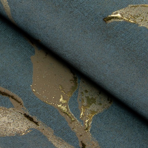 Pattern Name:Kupari Blue Metallic Foil Painterly Leaf Wallpaper