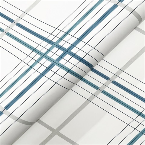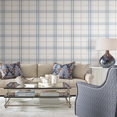 Pattern Name:Lakeside Plaid Blue Tailored Wallpaper