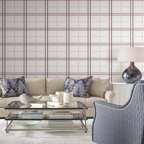 Pattern Name:Lakeside Plaid Red Tailored Wallpaper
