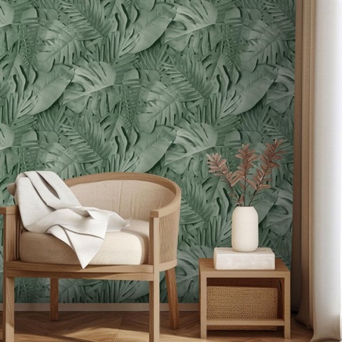Pattern Name:Large Photoreal Tropical Leaves Green Wallpaper