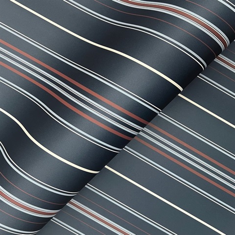 Lascelle Navy Blue Modern Pinstripe Wallpaper
