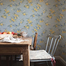 Pattern Name:Lemonade Light Blue Citrus Fruit Wallpaper
