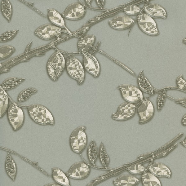 Light Grey Metal Leaf Wallpaper