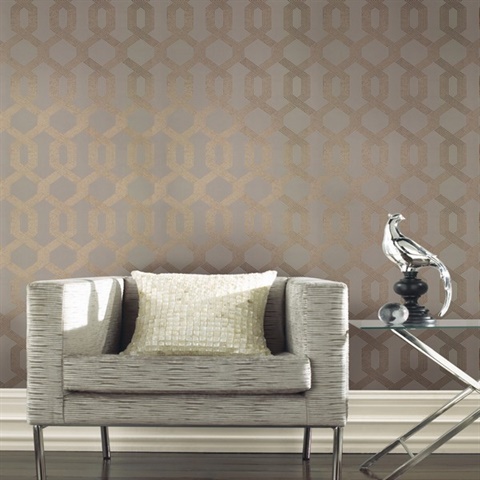Light Grey & Silver Viva Modern Trellis Metallic Wallpaper , Y6221201